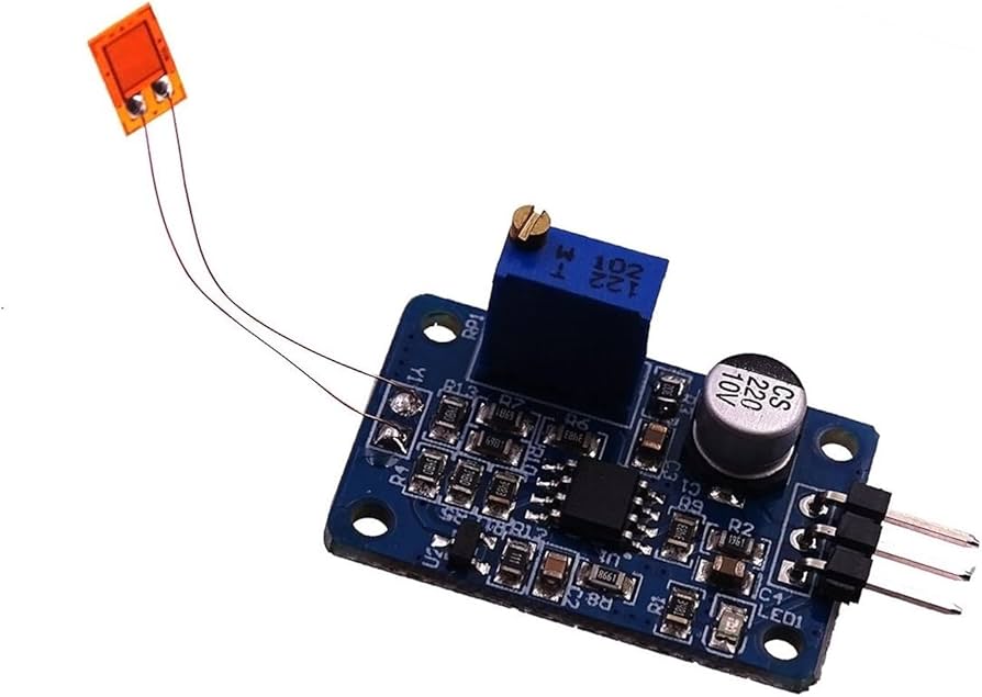 The strain gauge detects mechanical deformation (bending or pressure), which causes a change in electrical resistance. This change is interpreted by the Wheatstone bridge circuit and amplified by the onboard signal amplifier to provide a smooth analog voltage, proportional to the applied force or weight. Connect this signal to an ADC input of your microcontroller to read and process the data.